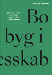 Fonden for Billige Boliger har sammen med en gruppe af modige fællesbyggere lavet det første byggefællesskab i et etageboligbyggeri i Danmark. Vi har i samarbejde med Jørgen Nue Møller udarbejdet bogen “Bo og byg i fællesskab“. Den fortæller meget mere om, hvad byggefællesskaber er og hvordan man kommer i gang med det.
